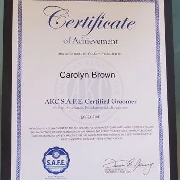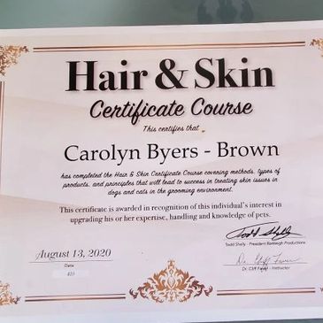 She takes pride in being knowledgeable regarding best practices, treatment methods and products and being proficient in her skills and abilities. To increase her knowledge, hone and expand her grooming skills and abilities, she has invested money, time and effort to obtained the following certifications. She re-certifies as needed to stay current and up-to-date.