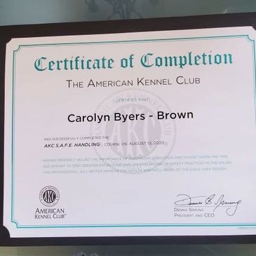 from The American Kennel Club, that values the importance of continuing education, provided training to impart greater knowledge and understanding of safety handling practices in the salon, ensuring the professional will better improve the health and well-being of the pets they groom.